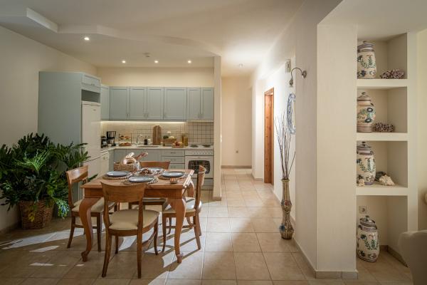 - Η κουζίνα διαθέτει: Βραστήρα, καφετιέρα, τοστιέρα ή φρυγανιέρα, φούρνο μικροκυμάτων, κουζίνα 4 εστιών, μεγάλο ψυγειοκαταψύκτη, πλυντήριο πιάτων, καθώς και τον απαραίτητο εξοπλισμό σε σκεύη κουζίνας.