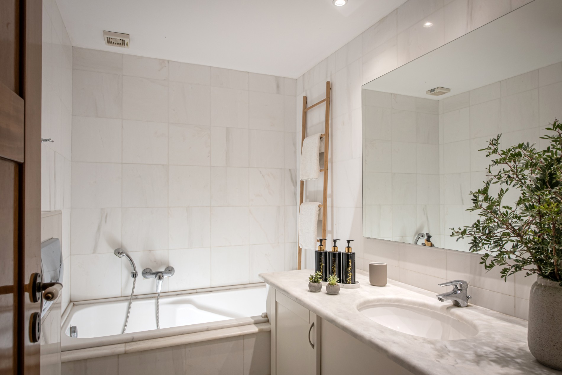 • Το μπάνιο διαθέτει: Προσόψια, λουτροπετσέτες και πετσέτες θαλάσσης, σεσουάρ, καθρέπτη make-up, σαμπουάν αφρόλουτρο, σαπούνι χεριών…