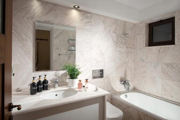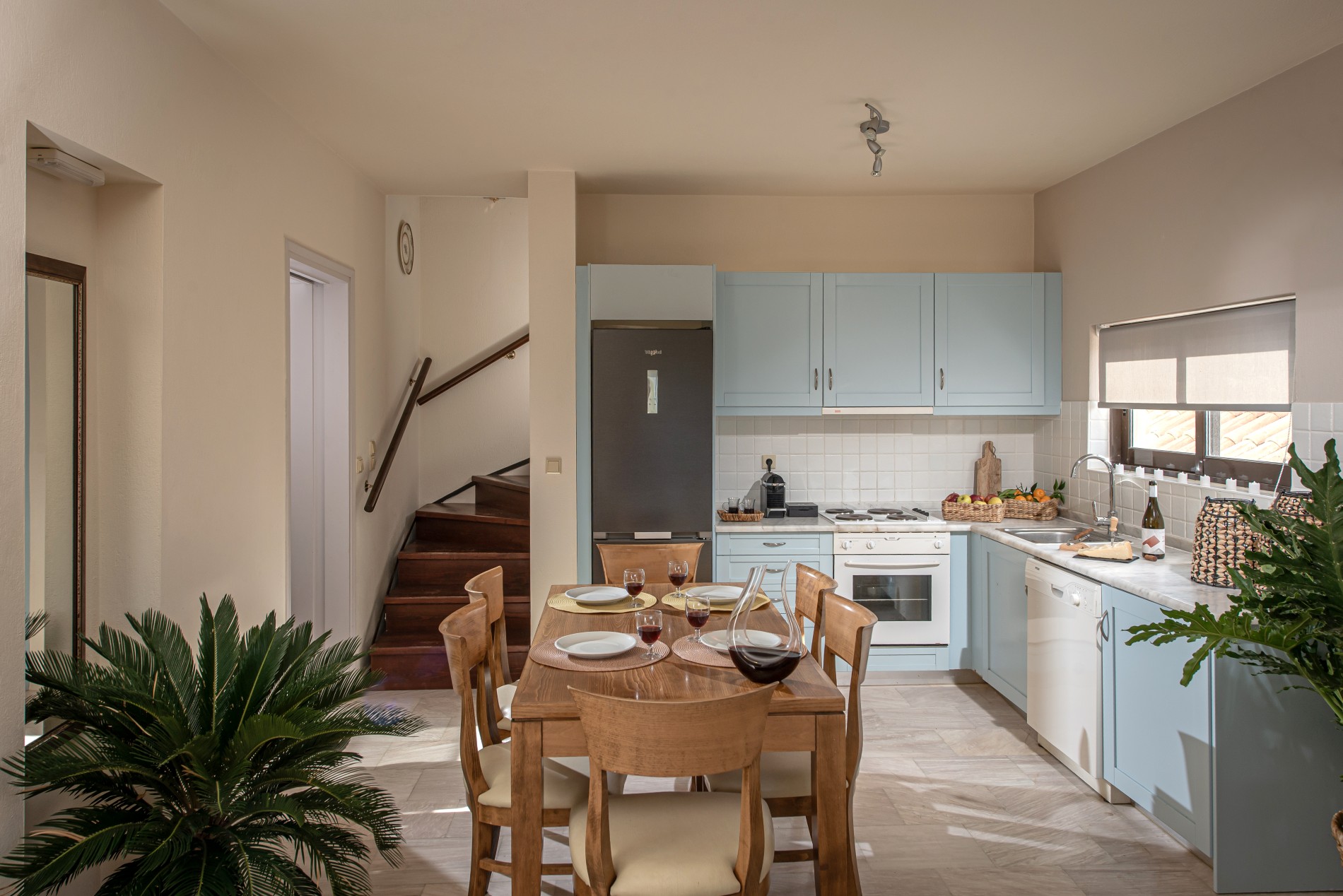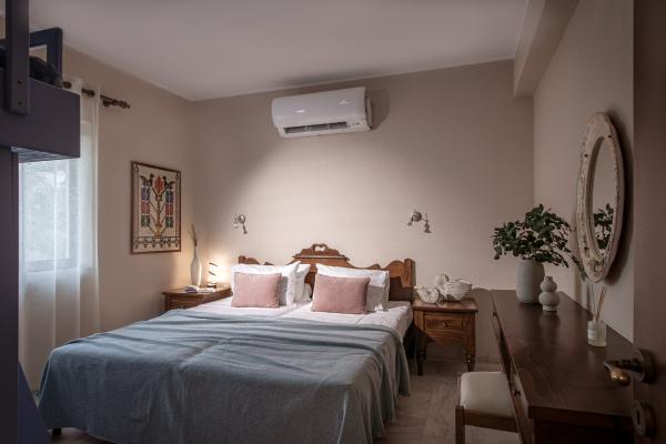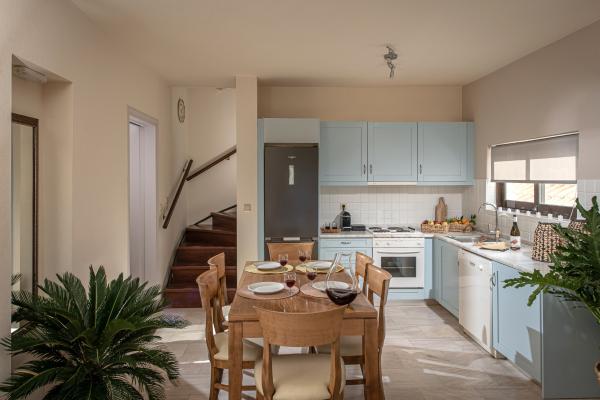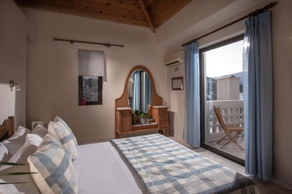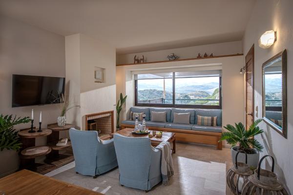 Just in front of the house and under a wooden pergola there is marble table ideal for alfresco dining. There is also a lounge on a wooden extend of the terrace that offers an unforgettable view to the bay. The remaining space allows you to lay your sunlounges and enjoy the Cretan sun. A portable barbeque is available upon request.