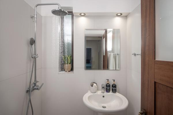 - 1 bedroom with a bathroom equipped with a shower and garden view