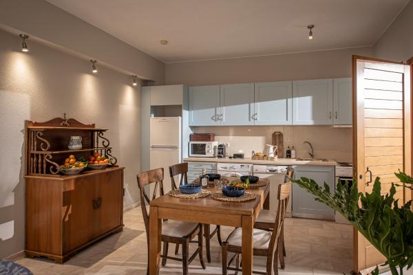 Just in front of the house and under a wooden pergola there is marble table ideal for alfresco dining. A lounge helps you to enjoy your terrace view. The remaining space allows you to lay your sunlounges and enjoy the Cretan sun. A portable barbeque is available upon request.