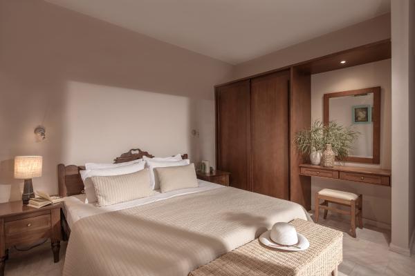 Istron luxury “bay” villas are located in the bay of Istron which they harmonically but still discretely share with the neighboring hotel. They are arranged in 2 parallel forms, elegantly cascading down the eastern slope of the gulf, each level dedicated to a single house. Villa Dimitris is the first villa, ground level on the formation nearest to the sea.