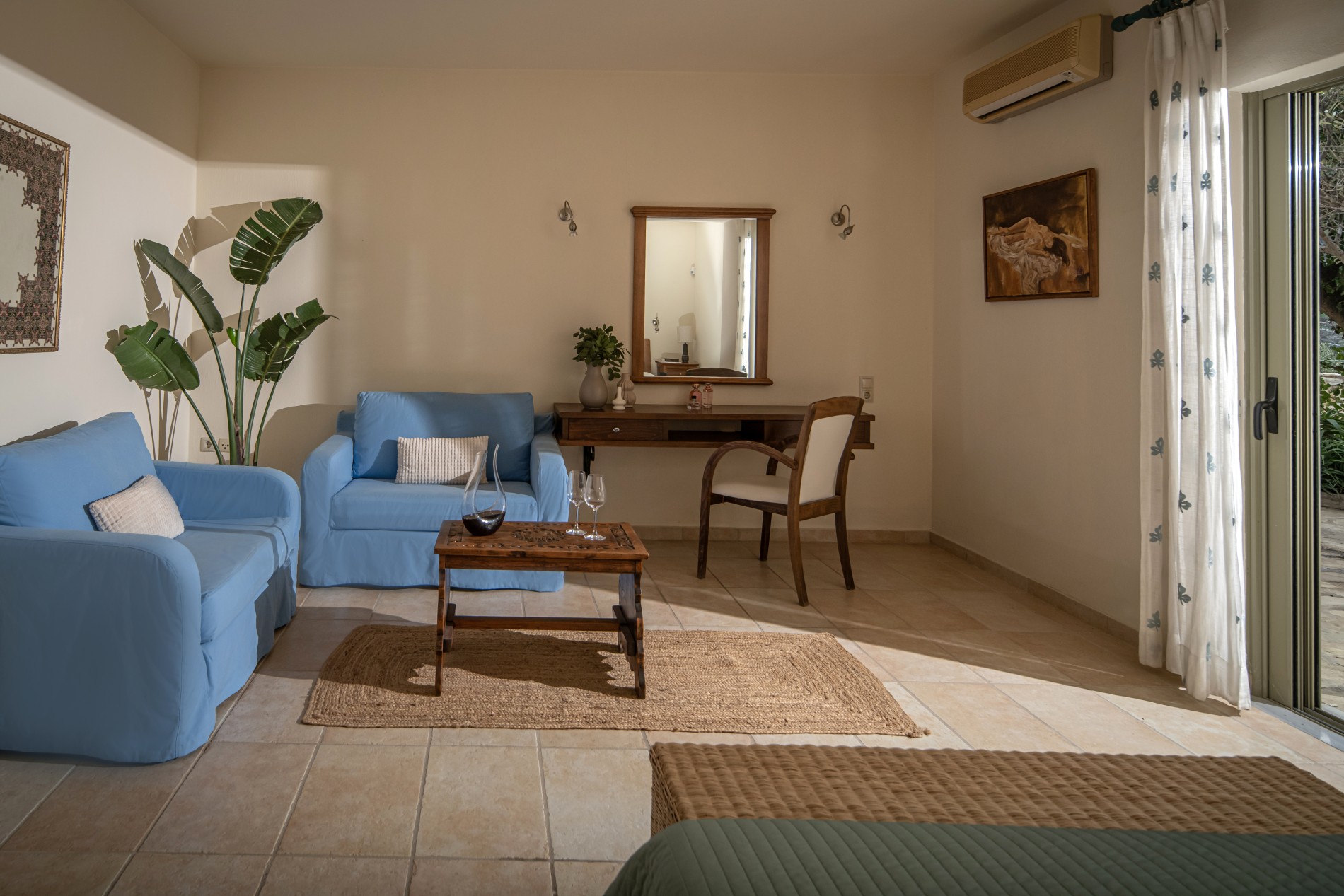 Istron luxury “bay” villas are located in the bay of Istron which they harmonically but still discretely share with the neighboring hotel. They are arranged in 2 parallel forms, elegantly cascading down the eastern slope of the gulf, each level dedicated to a single house. Villa Niovi is located at the eastern and farthest to the sea complex, just above Villa Alkistis and our reception.