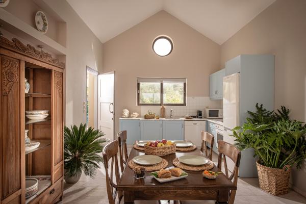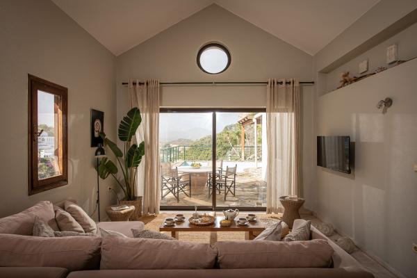 Istron luxury “bay” villas are located in the bay of Istron which they harmonically but still discretely share with the neighboring hotel. They are arranged in 2 parallel forms, elegantly cascading down the eastern slope of the gulf, each level dedicated to a single house. Villa Pan-Pan is the third villa, amidst “Marianna” and the “Tower” on the formation nearest to the sea.