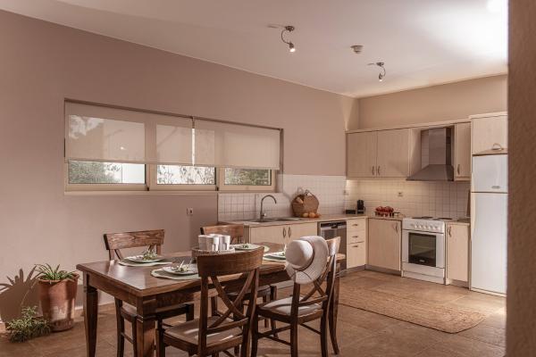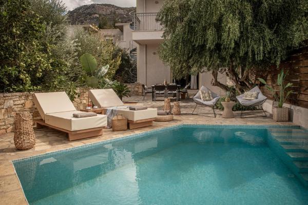 Villa Elea is part of our Village Villas concept, set in the western outskirts of Istron village and tucked just behind the residential front that has developed across the main road. It is the first house in a row of a three terraced maisonettes. The complex faces the sea over a wide olive grove. The distance between the “Village” and the “Bay” Istron Villas is 2 km.