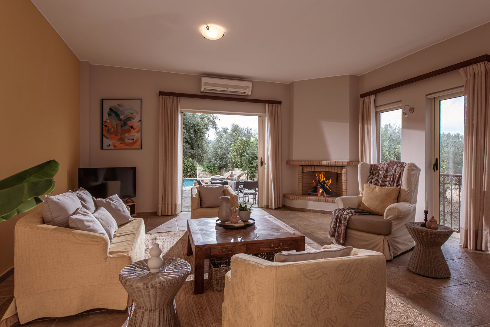 - Nearest beach is Agios Panteleimon, a 10-15min stroll or just a minute car drive.