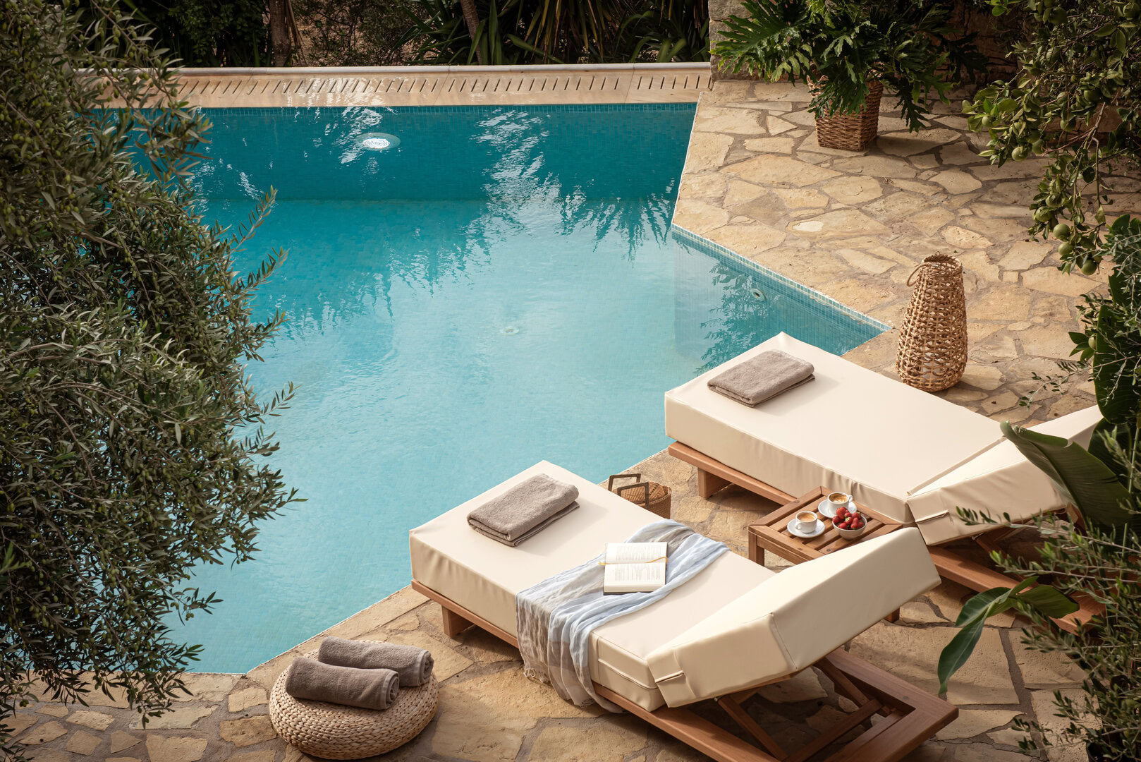 - The pool is the focal point of the terrace.